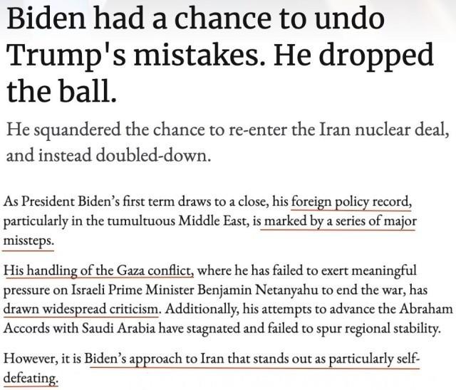 文章认为,美国对伊朗问题的处理不当是导致其中东政策失败的核心原因。
