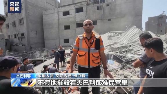 救援人员 艾哈迈德·卡卢特:连续七天了,以色列毁灭性的战争机器没有停下来,不停地摧毁着杰巴利耶难民营里所有的生命迹象。如你所知,如果我们有工具和重型机械,我们能救出来所有幸存者。很不幸的是,在现有条件下,部分废墟下的幸存者我们无法施救。他们随时可能死亡,因为我们没有救援工具和机械。