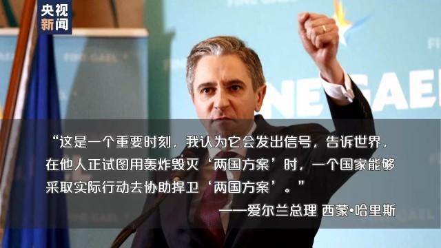 “这是一个重要时刻,我认为它会发出信号,告诉世界,在他人正试图用轰炸毁灭‘两国方案’时,一个国家能够采取实际行动去协助捍卫‘两国方案’。”——爱尔兰总理 西蒙·哈里斯