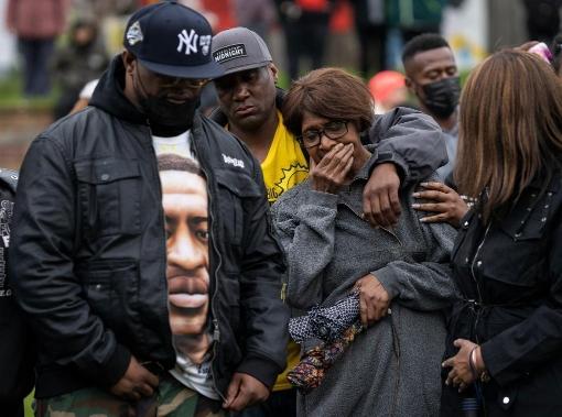 2022年5月25日,在美国明尼苏达州明尼阿波利斯市,弗洛伊德的家人参加哀悼活动,纪念弗洛伊德遇害两周年。新华社发(本·布鲁尔摄)