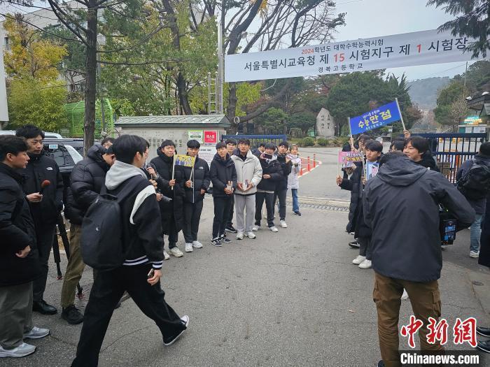 2023年11月16日,韩国举行“2024学年度大学修学能力考试”(高考)。图为当日7时许,考生进入首尔市钟路区一考场。 中新社记者刘旭摄