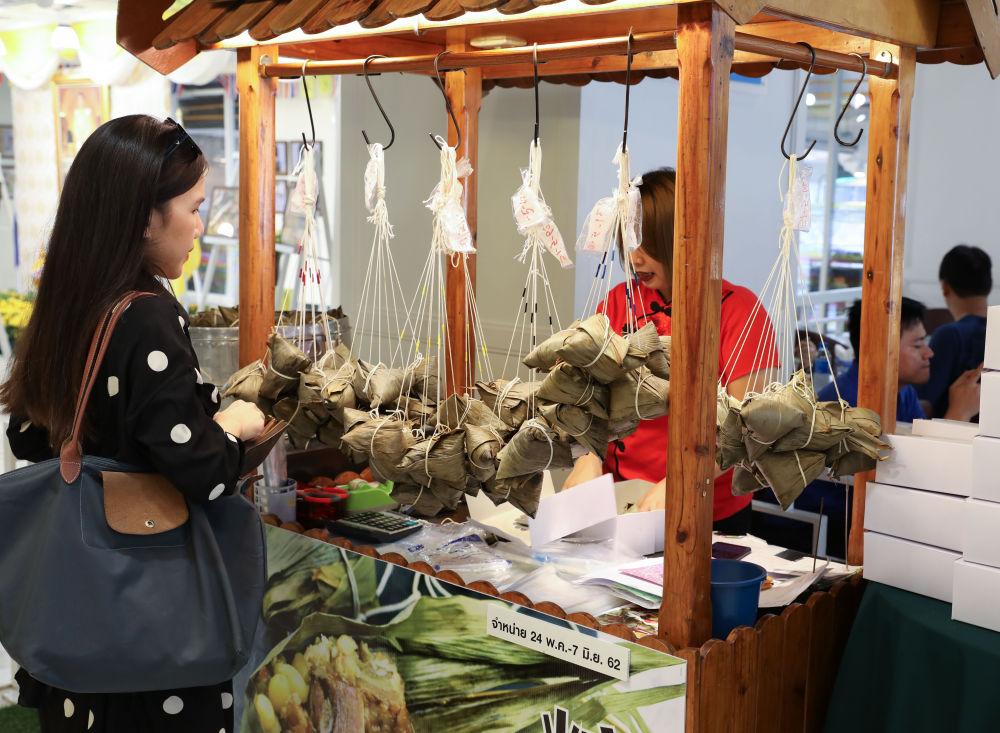 2019年6月2日,一名女子在泰国曼谷的一家酒店内购买粽子。新华社记者 张可任 摄