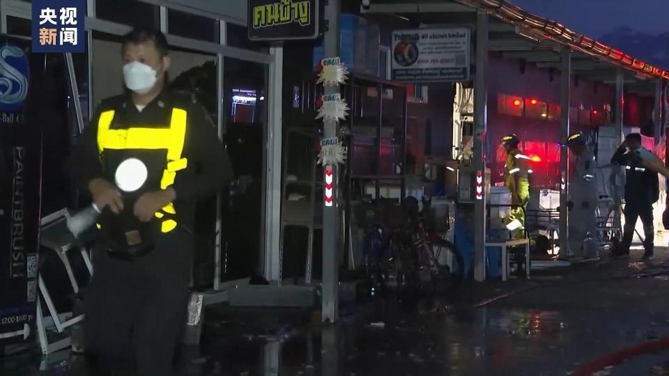 天还没亮,位于泰国曼谷的乍都乍周末市场已经一片火光。消防人员在进行灭火作业,市场里浓烟密布。