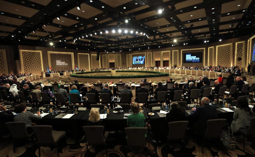 6月11日拍摄的加沙紧急人道主义应对会议现场。加沙紧急人道主义应对会议11日在约旦侯赛因国王会议中心召开,会议旨在加强国际社会协调,寻求有效应对加沙地带人道主义危机的机制和步骤。新华社发(穆罕默德·阿布·古什摄)