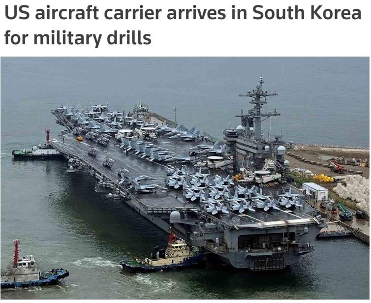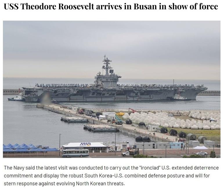 韩国海军在一份声明中称,“罗斯福”号航母到来是为了履行美国“坚不可摧的延伸威慑”承诺,展示强大的韩美同盟关系。