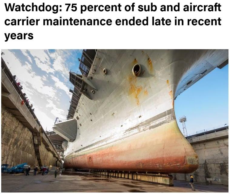 美国《海军时报》此前报道称,由于造船业不给力,以及为满足全球称霸所进行的过度使用,美国海军近年来有75%的航母和潜艇无法及时维修,已经陷入疲于奔命的窘境,且超期使用导致它们战备能力严重透支。