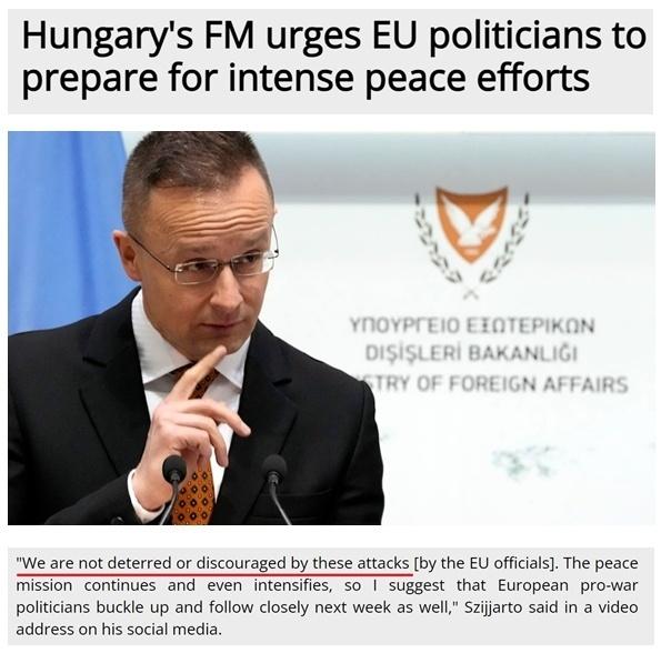 匈牙利外长西雅尔多当地时间7日最新发声指出,一些西方政客多次公开批评匈政府为推动和平所做的努力,这也正好解释了欧洲面临的战争危机正在加深的原因。