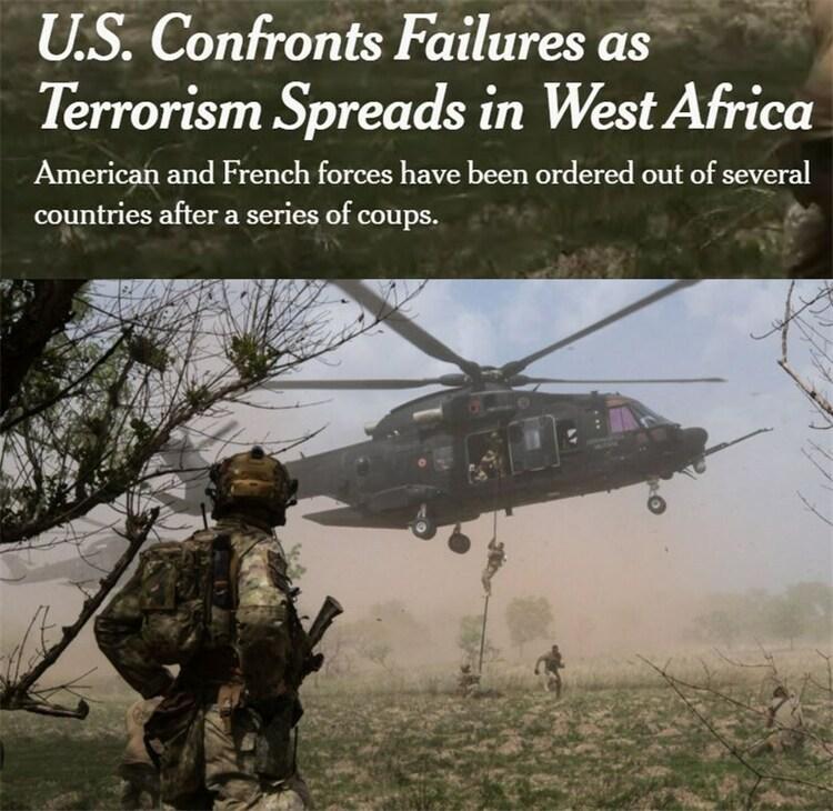 △《纽约时报》:美国驻军不仅没能遏制恐怖组织的活动,反而令其不断外溢,导致暴力和叛乱从非洲内陆向沿海区域蔓延。