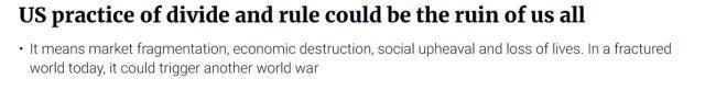 这意味着市场分裂、经济崩溃、社会动荡、生命损失,最重要的是,最终可能引发另一场世界大战。对世界的未来而言,美国的分化策略可能会演变为分裂与毁灭。