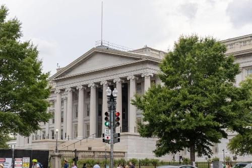 这是7月29日在美国首都华盛顿拍摄的美国财政部大楼。新华社记者 胡友松 摄