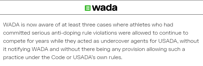 世界反兴奋剂机构前几天披露,他们发现美国常年包庇至少3名严重违规“嗑药”的运动员,理由居然是把这些人发展成了“线人”。这些“线人”整个职业生涯都在正常参赛和拿奖,自己就是“奉命作弊”,还指望他们抓作弊吗?
