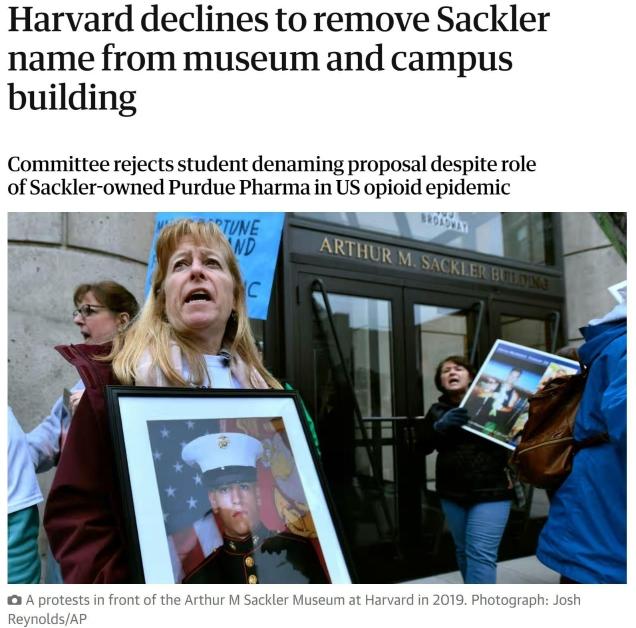 近日,美国哈佛大学拒绝了部分学生及有关方面提出的将“萨克勒”这一名字从哈佛大学博物馆及其他校内建筑上去除的要求,再次引发了人们对美国药物成瘾问题的关注。