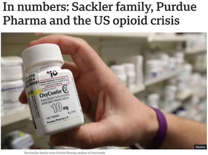 2019年,萨克勒家族还被开出天价罚金,迫使普渡制药公司总部申请了破产保护。