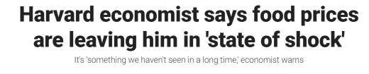 哈佛大学经济学教授、前国际货币基金组织首席经济学家肯尼斯·罗格夫14日在福克斯财经频道《与玛丽亚的早晨》节目中谈到美联储(fed)对抗通胀的下一步措施时,承认对食品杂货的价格感到震惊。