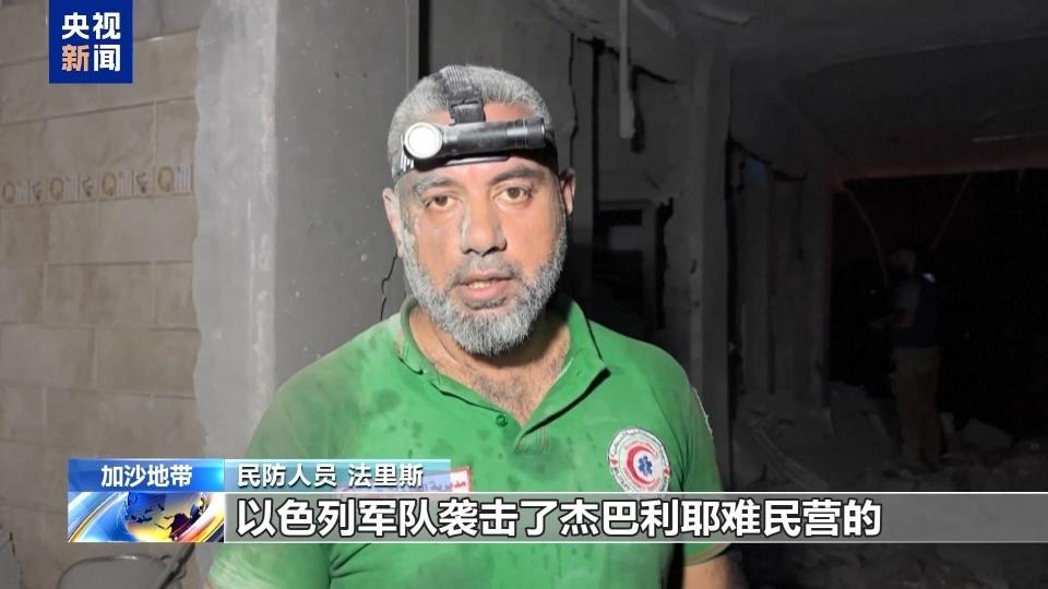 民防人员 法里斯:以色列军队袭击了杰巴利耶难民营的一处住宅楼,有人死亡和受伤。其中大多数是妇女和儿童。以色列军队仍在对巴勒斯坦人实施种族灭绝,对巴勒斯坦人民的屠杀和报复仍在继续。