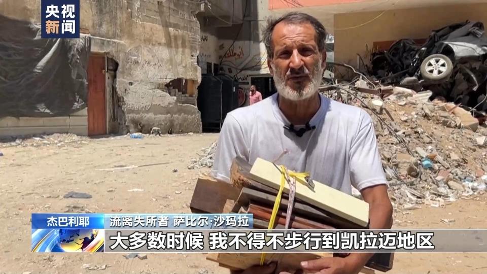 流离失所者 萨比尔·沙玛拉:我需要步行到废墟周围收集木材,大多数时候我不得不步行到凯拉迈地区,肩上扛着收集好的一捆木材回家。如果我不带柴火回家,我们一家人就不能做饭。