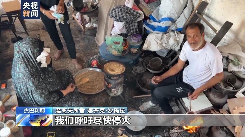 沙玛拉一家人目前暂住的楼房尽管主体结构还算完整,但墙体上因轰炸而产生的大洞表明这片土地还在经受炮火轰炸。在临时住所内,娜齐克·沙玛拉只能在简易炉子上蒸煮食物。她说,一家人已经在食物、能源等各种物资缺乏的情况下生活了很久,她现在最希望的就是停火。
