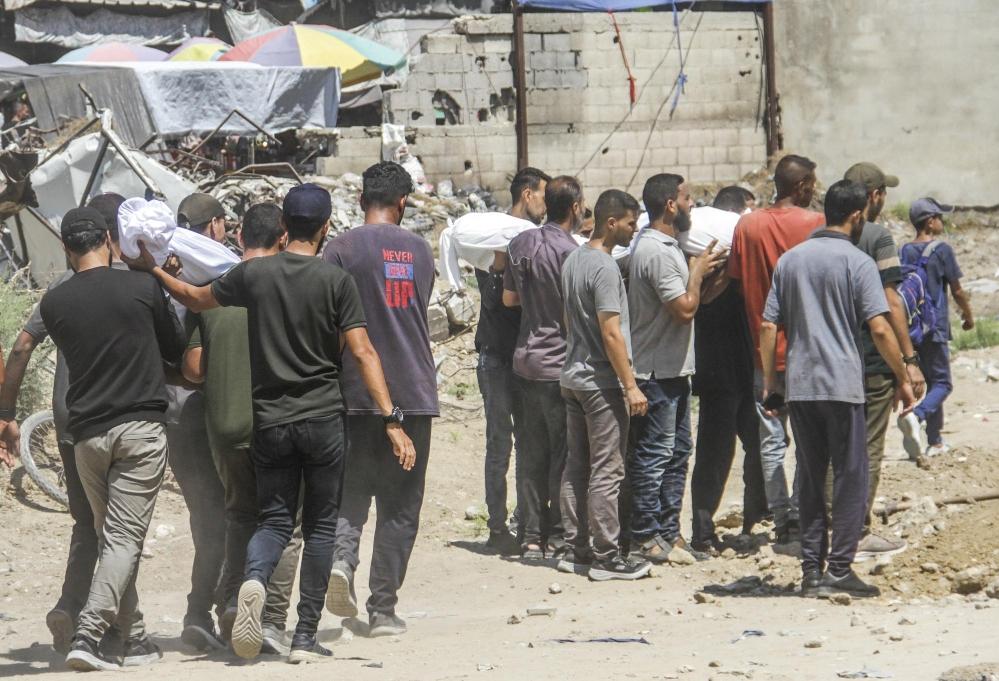 8月12日,在加沙地带北部加沙城,人们为以军袭击中的遇难者举行葬礼。新华社发(马哈茂德·扎基摄)