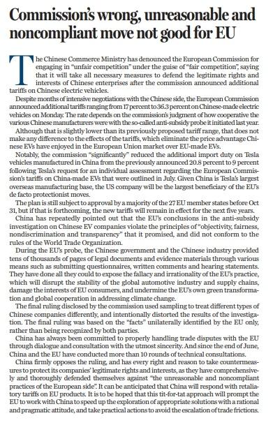 原标题:Commission's wrong, unreasonable and noncompliant move not good for EU