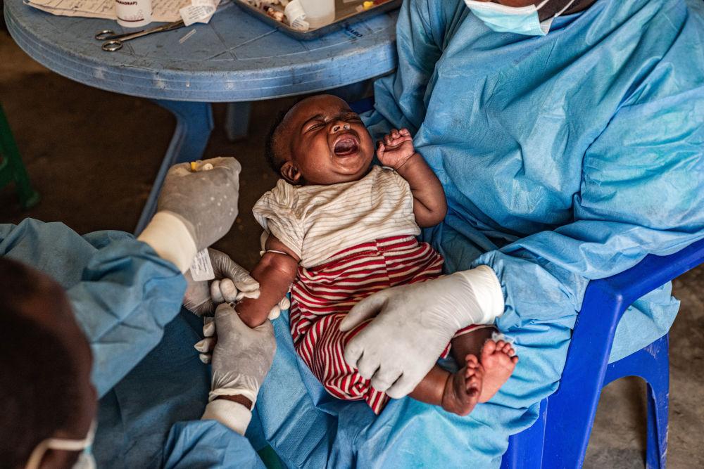 8月15日,在刚果(金)北基伍省首府戈马市附近尼拉贡戈地区的一座医院里,医务人员对感染猴痘病毒的儿童进行治疗。新华社发(扎南摄)
