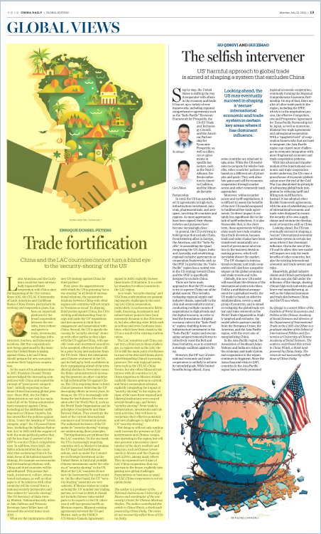 近年来,中国与拉美和加勒比国家的合作越来越广泛而深入,中国-拉共体论坛等合作机制成为加强中拉关系与合作的重要平台。相比之下,美国用狭隘的意识形态论调处理同中国和拉美国家的关系,在各领域追求“安全优先”,试图通过拉“小圈子”孤立中国,限制中国在拉美地区的影响力。中国和拉美国家要警惕美国这一战略转向,并以新型合作模式予以应对,实现互利共赢。