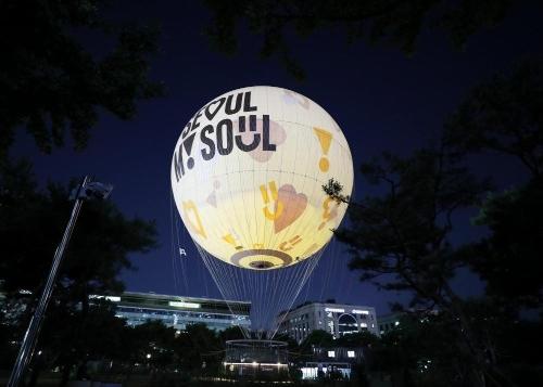 6月28日,在韩国首尔,游客乘坐巨型月亮造型气球升空。新华社记者姚琪琳摄