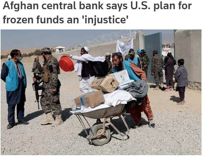路透社:阿富汗央行称,美国冻结阿中央银行海外资产的做法“不公平”。