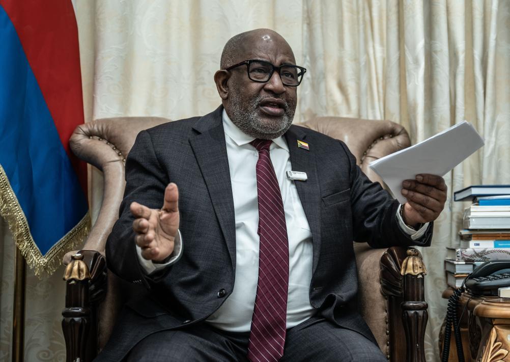 图为8月29日,科摩罗总统阿扎利在位于科摩罗首都莫罗尼的总统府接受新华社记者专访。(新华社记者王冠森摄)