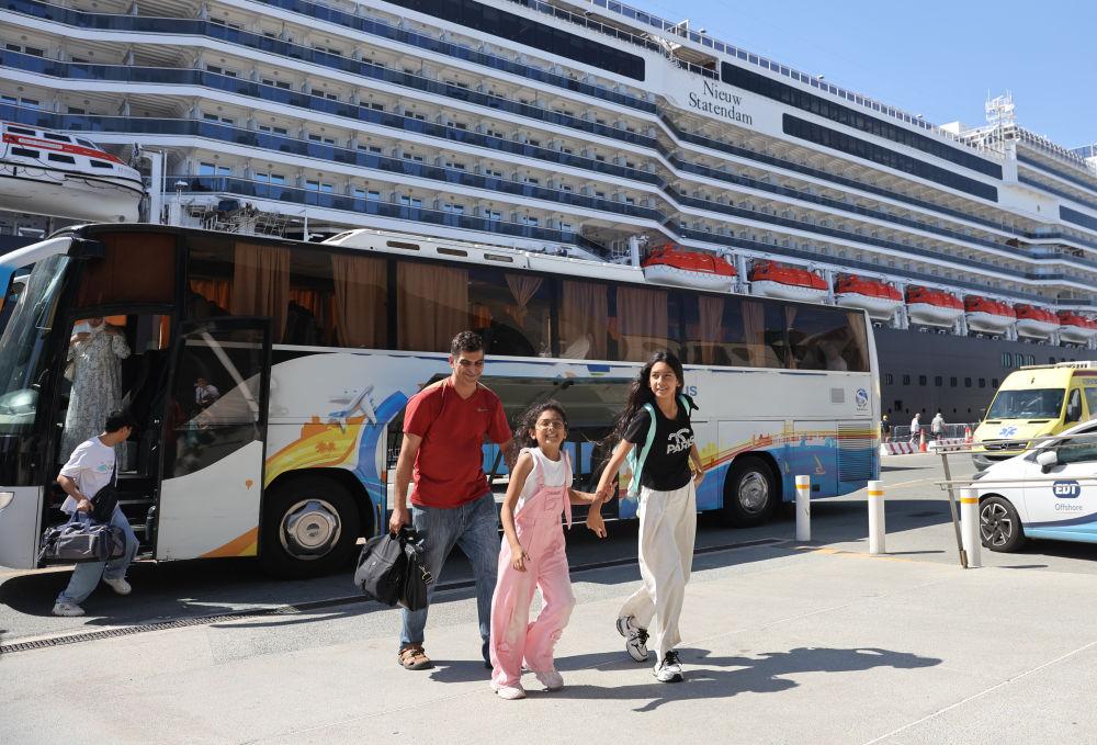 10月1日,从黎巴嫩撤离的中国侨民及外籍家属抵达塞浦路斯利马索尔港。(新华社记者李京摄)