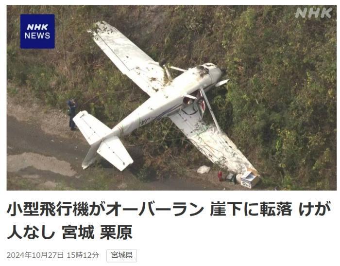 据报道,这架飞机当时在宫城县栗原市濑峰机场着陆后,未能及时减速,在滑出跑道后机身翻转坠落悬崖。