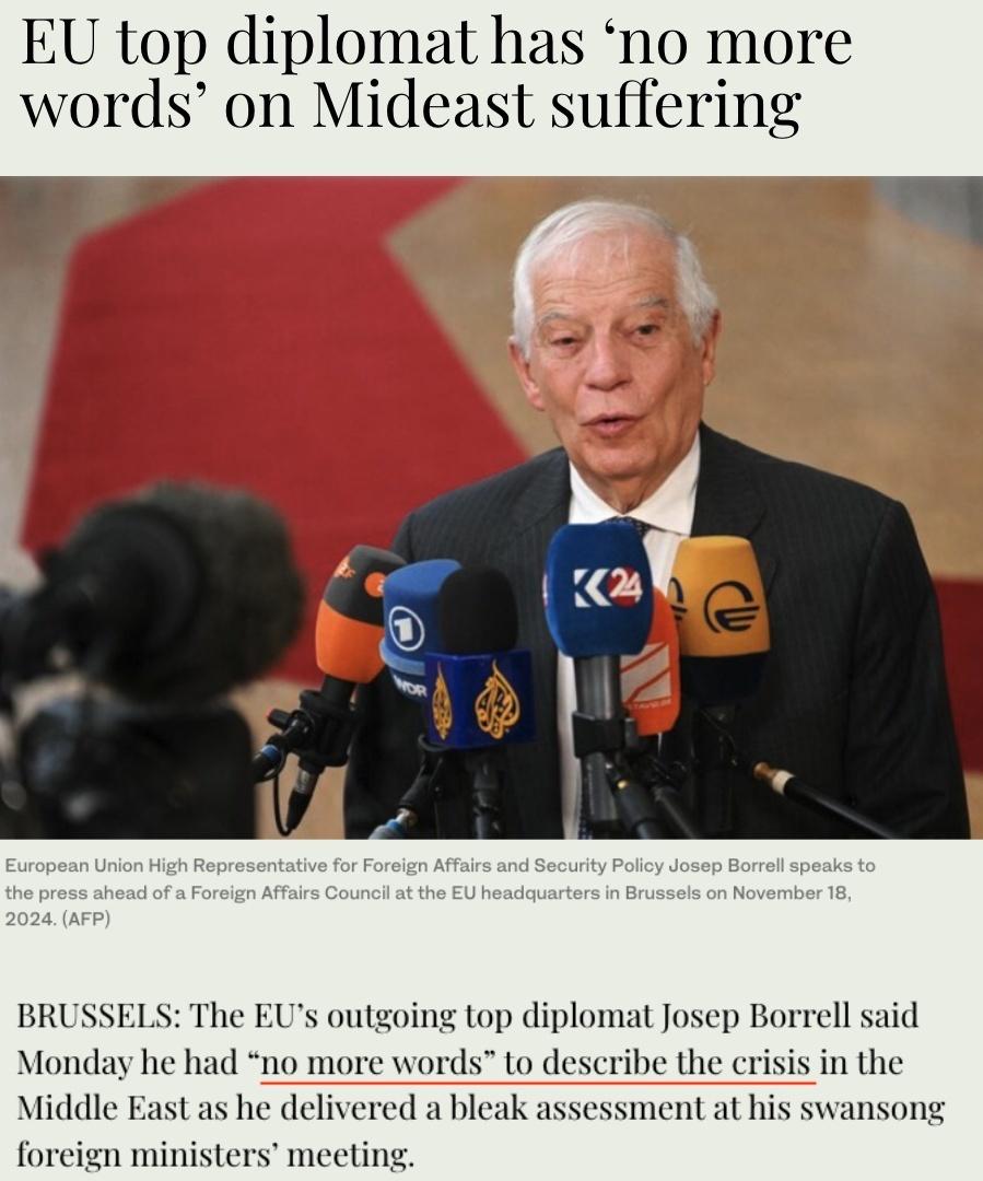 “无话可说了,我已经用尽所有可能的言辞解释了中东正在发生的事情。”