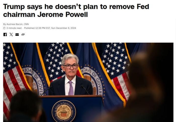 中新网12月9日电 据美媒报道,当地时间8日,美国当选总统特朗普在接受美媒采访时表示,没有计划撤换美联储主席鲍威尔。
