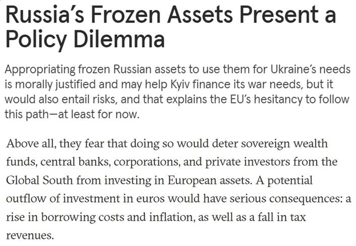 卡内基国际和平基金会发文指出,欧洲动用俄罗斯被冻结资产可能导致潜在的欧元投资外流。
