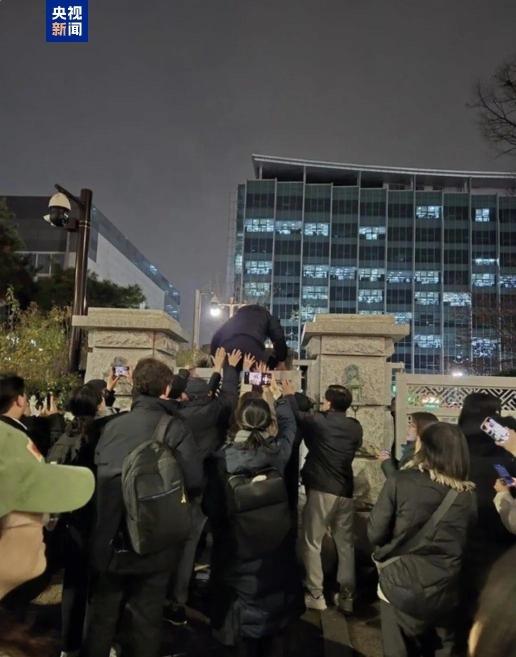 △2024年12月4日凌晨,韩国首尔,韩国议员翻墙试图进入国会投票。