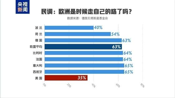 就算没有“特朗普冲击”,美国人也不认为欧洲应该“战略自主”。最新的民调结果显示,只有35%的美国人认为欧洲是时候走自己的路。