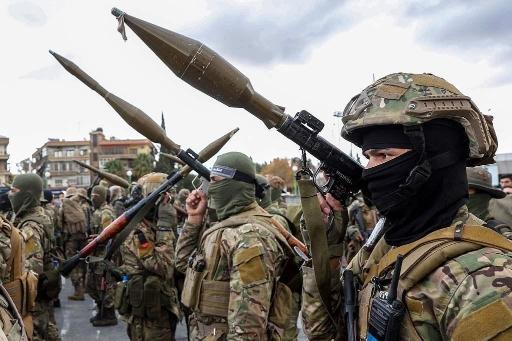 △当地时间2024年12月27日,叙利亚大马士革,叙利亚过渡政府武装人员参加军事阅兵。(图自视觉中国)