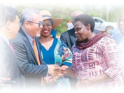 乌干达副总统杰西卡·阿卢波(右一)到访中乌姆巴莱工业园,与张志刚交谈。