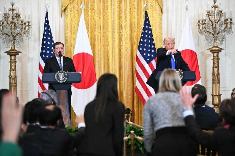 2025年2月7日,美国总统特朗普(右)与到访的日本首相石破茂在华盛顿白宫出席联合记者会。图源:新华社/法新
