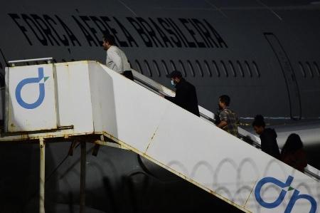 2025年2月7日,在巴西东北部塞阿拉州福塔莱萨市,被美国驱逐出境的第二批巴西非法移民登上一架巴西空军飞机。新华社发(卢西奥·塔沃拉摄)