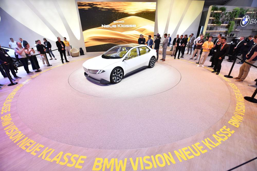 2023年9月5日,在德国慕尼黑,人们在德国国际汽车及智慧出行博览会的宝马展区参观。新华社记者任鹏飞摄