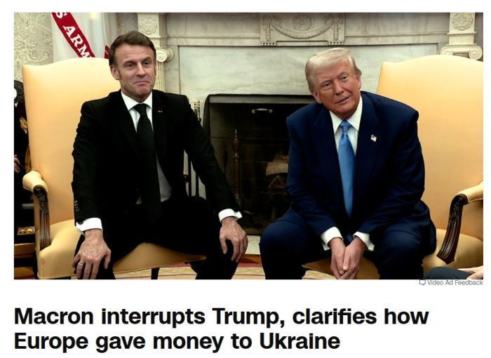 报道称,马克龙当时迅速伸手打断特朗普,并用英语对他说,“不,事实上,坦率地说,我们付钱了。”他说,欧洲援乌资金的60%都是自掏腰包“支付”的,欧洲援乌方式就像美国一样,包括贷款、担保和赠款。