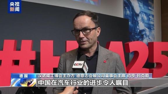 汉诺威工博会主办方 德意志会展公司董事会主席 约亨·科克勒:中国在汽车行业的进步令人瞩目。同时中国在风能和太阳能等可再生能源方面的布局也十分深入。毕竟电动车只有在真正使用可再生电力的情况下才有意义,而且中国不仅在国内扩大生产份额,还积极开拓第三方市场。我们对此高度认可。