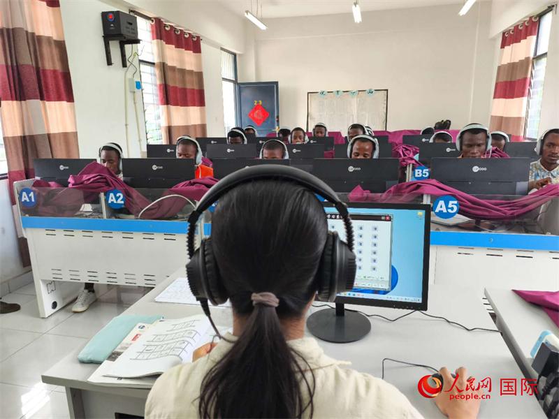 中国老师在给学生们讲课。人民网记者 黄培昭摄