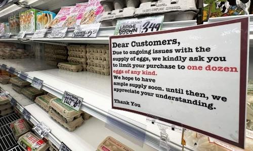鸡蛋让美国总统特朗普伤脑筋。路透社说,特朗普先前承诺1月20日上任首日就要让美国蛋价降下来,但执政满一个月时,美国蛋价较去年同期上涨59%。