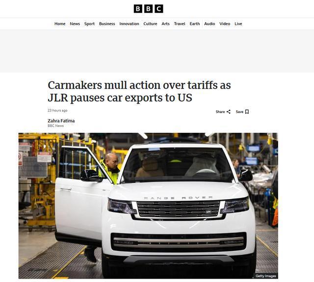 来看两个汽车产业界已经发生的对美国关税政策的回应。第一条消息来自英国汽车制造商捷豹路虎,关键词是“暂停对美出口”和在美国“涨价”。