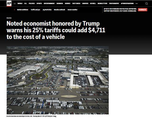 例如美国知名经济学家拉弗警告,加征25%的汽车关税可能会导致每辆汽车的制造成本增加超过4700美元。美国银行的分析报告则认为,关税可能让美国汽车销量下降300万辆,相当于去年总销量的近五分之一。
