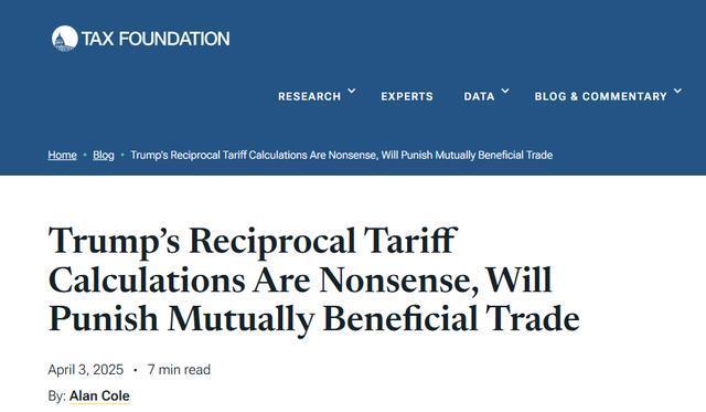 对于“对等关税”政策,有美国研究机构给出评价:“毫无意义”。