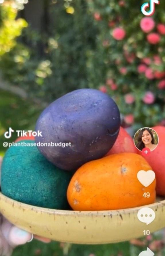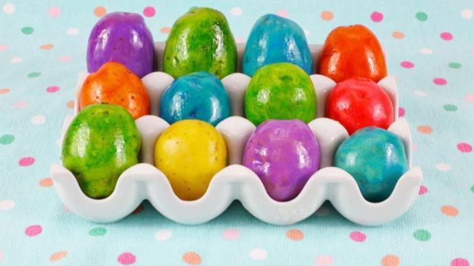 有人买来小土豆,一个个扔进染料碗里染色。最终效果和鸡蛋差不多,但价格却便宜得多。