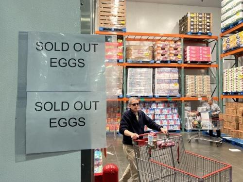 美国本轮禽流感疫情2022年暴发,不少养鸡场扑杀蛋鸡,导致鸡蛋零售价一路走高,自去年年底以来出现“蛋荒”。据美国劳工部数据,每打鸡蛋零售价在今年1月创下4.95美元的高价纪录,2月进一步涨到5.9美元。