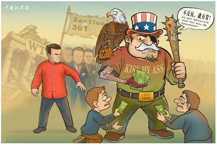 4月10日,白宫官方社交媒体账号发文:DO NOT RETALIATE AND YOU WILL BE REWARDED(不要报复,你就会得到奖赏)。美国一方面肆意挥舞关税大棒进行讹诈,一方面恐吓他国不要报复,色厉内荏的“恶霸”形象跃然纸上。